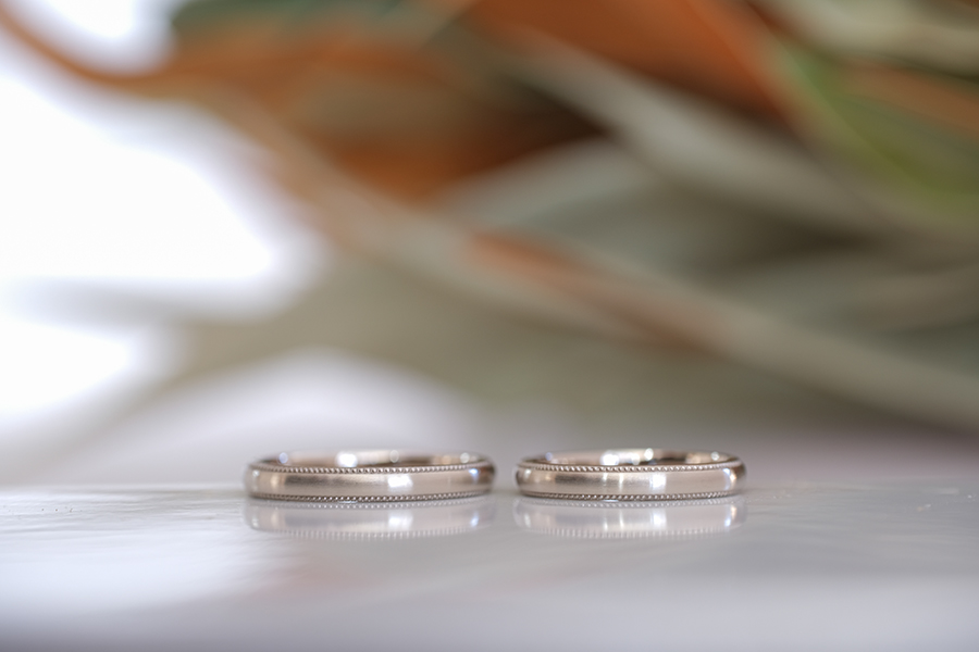 柔らかなマットの質感にミルグレインを両サイドに加え、クラシカルな雰囲気も感じさせる素敵な結婚指輪となりましたね。またホワイトゴールドの温かいお色味がお二人の柔らかな雰囲気にとてもよくお似合いでいらっしゃいました。