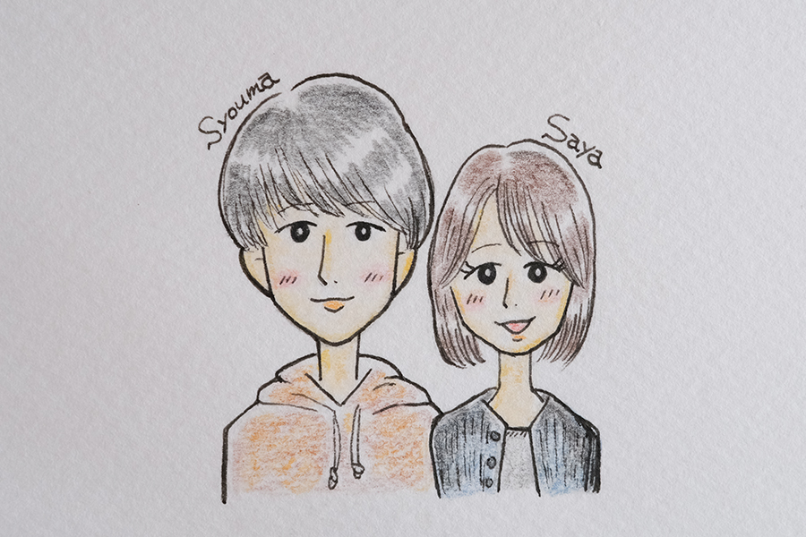 完成したお二人の指輪と共に、maroiから贈る二つのプレゼント。体験当日のお二人のご様子を残したオリジナルの似顔絵と、様々なお色味のピンクを取り入れたドライフラワーブーケです。お二人の今日という大切な一日の思い出を振り返る、そんなきっかけとなるアイテムになりますように。