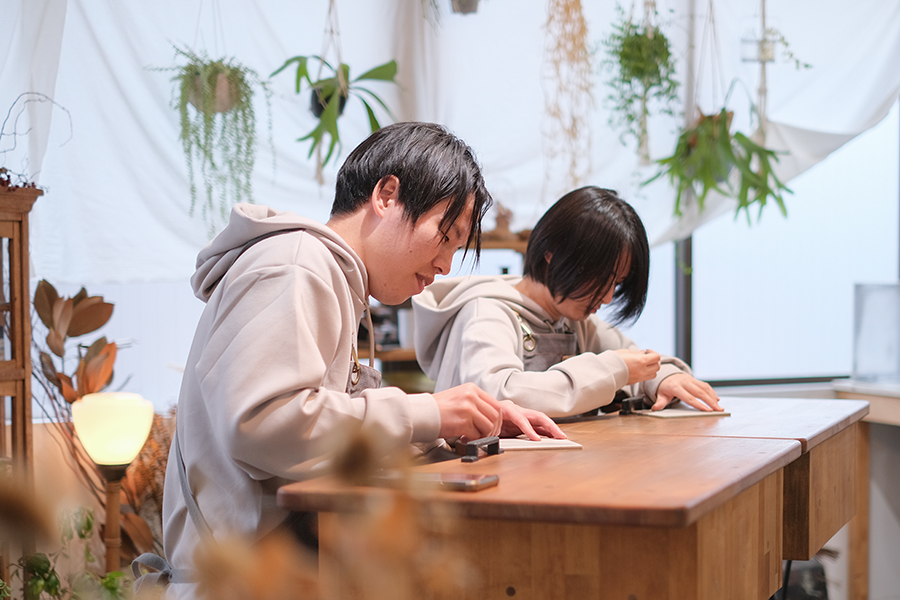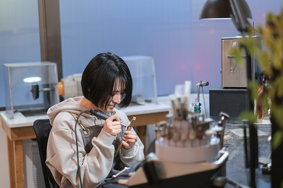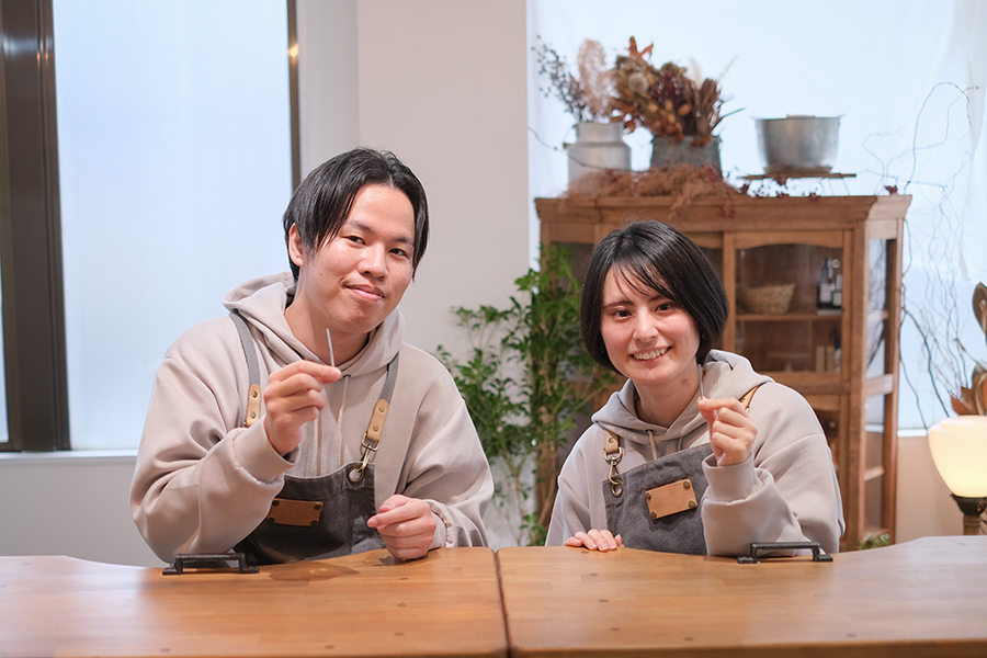 時には言葉を交わすことも忘れて集中した真剣な場面や、また時には和やかに笑い合って…と穏やかな雰囲気の中で作り進めた結婚指輪。この一日の中で、きっと指輪そのものだけでなく二人の大切な思い出をひとつ増やす事ができたのではないでしょうか。